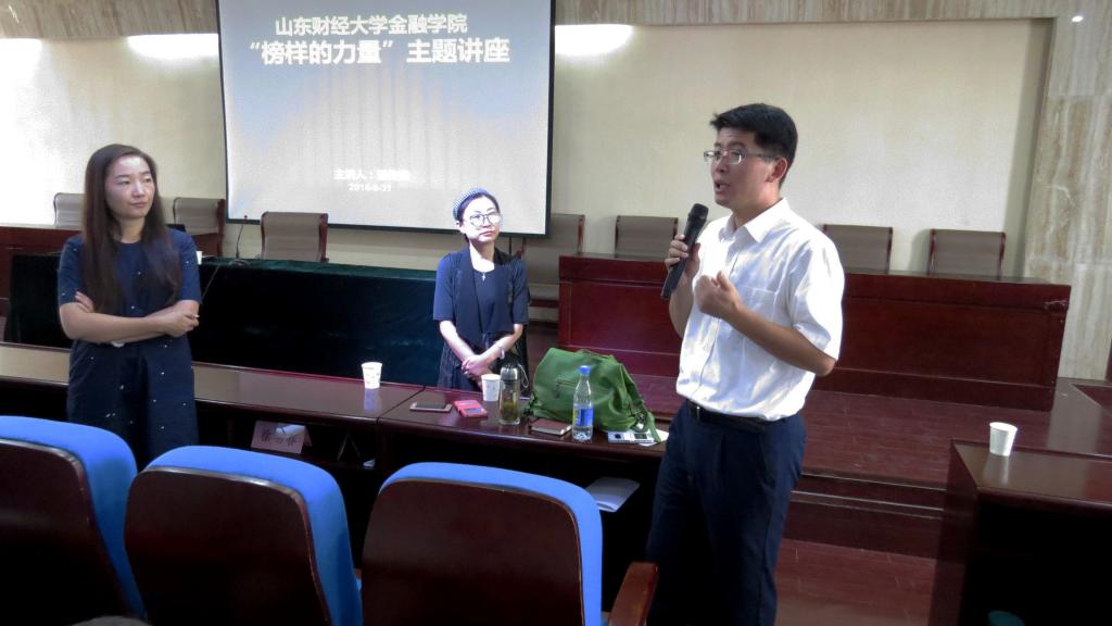 8月31日上午,我院在圣井校区敏行楼5101教室开展第二场“榜样的力量”主题讲座。知名校友齐鲁银行总行监察部副总经理汲传梁应邀前来为新生作讲座,我院团委书记彭艳红、党委秘书吕海霞及2016级全体新生参加了本次讲座。
