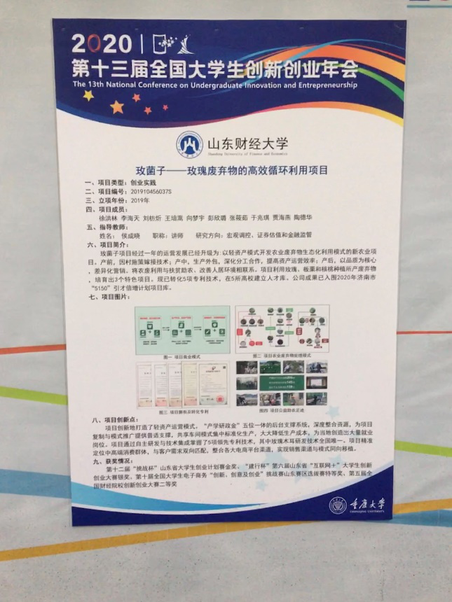 玫菌子是创业团队打造的一个农业废弃物生态化综合利用项目,主要利用玫瑰废弃物生产特色食用菌,在解决玫瑰产业废弃物处置难题的同时,通过大学生创业带动农户脱贫增收。项目获得了2019年全国大学生创新创业计划国家级立项,并于今年顺利结项,评定为“优秀”结项等级。