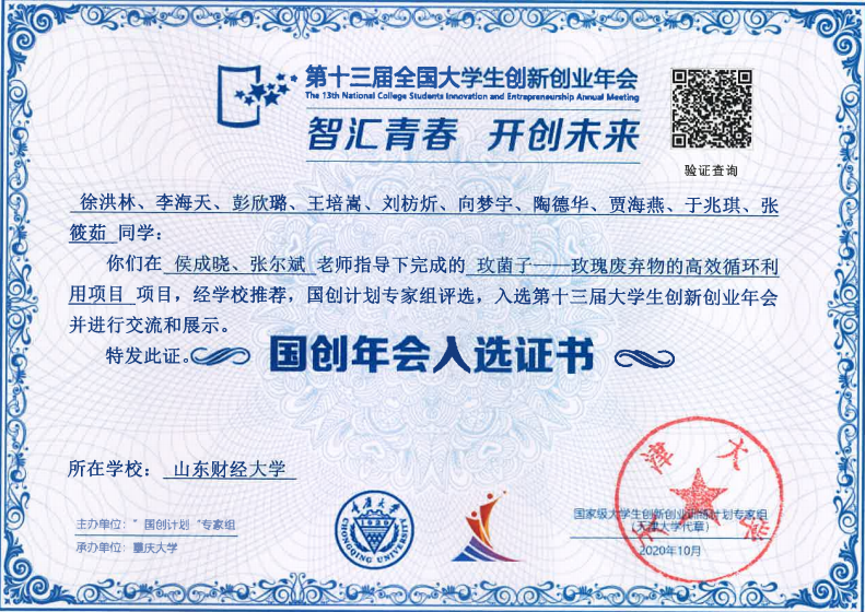 我院2017级本科生徐洪林负责的《玫菌子——玫瑰废弃物的高效循环利用项目学校推荐,国创计划组委会专家评选作为优秀项目参与此次年会,项目成员李海天和指导老师侯成晓在年会上进行了项目展示和经验分享,获得了专家评委的一致认可