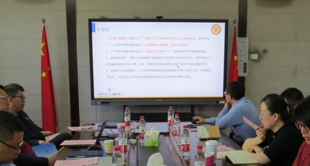 山东财经大学金融学院副院长肖祖沔副教授报告的论文题目是《Power of competition: Unraveling the impact of China’s fair competition review system implementation on firm innovation》,报告指出激烈的竞争会促进公司层面的创新。公平竞争审查制度实施后企业面临的竞争加剧从而刺激企业创新。公平竞争审查制度对创新的刺激作用在国有企业、非高新技术企业、大企业和市场化程度较低的地区尤为突出。山东财经大学金融学院张超博士从样本选择和创新的多维度特征角度提出了建议。