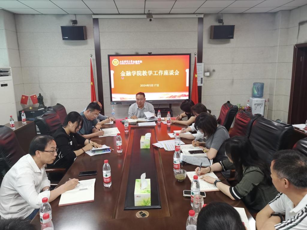 5月17日下午,金融学院于舜耕校区金融楼第三会议室召开了本学期的教学工作座谈会。此次会议旨在全面总结学院教学工作经验,分析当前教育形势,并就未来教学发展方向进行深入研讨。学院领导班子成员、各系(中心)主任、副主任、辅导员和教学秘书参会。会议由党委书记吴红文主持。