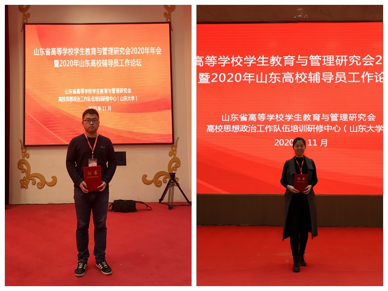 1118日至19日,由省委教育工委指导,山东省高等学校学生教育与管理研究会、教育部高校思想政治工作队伍培训研修中心(山东大学)组织的2020年山东高校辅导员工作论坛在潍坊市举办。我院辅导员陈玉林、王亚男分获二等奖、三等奖。