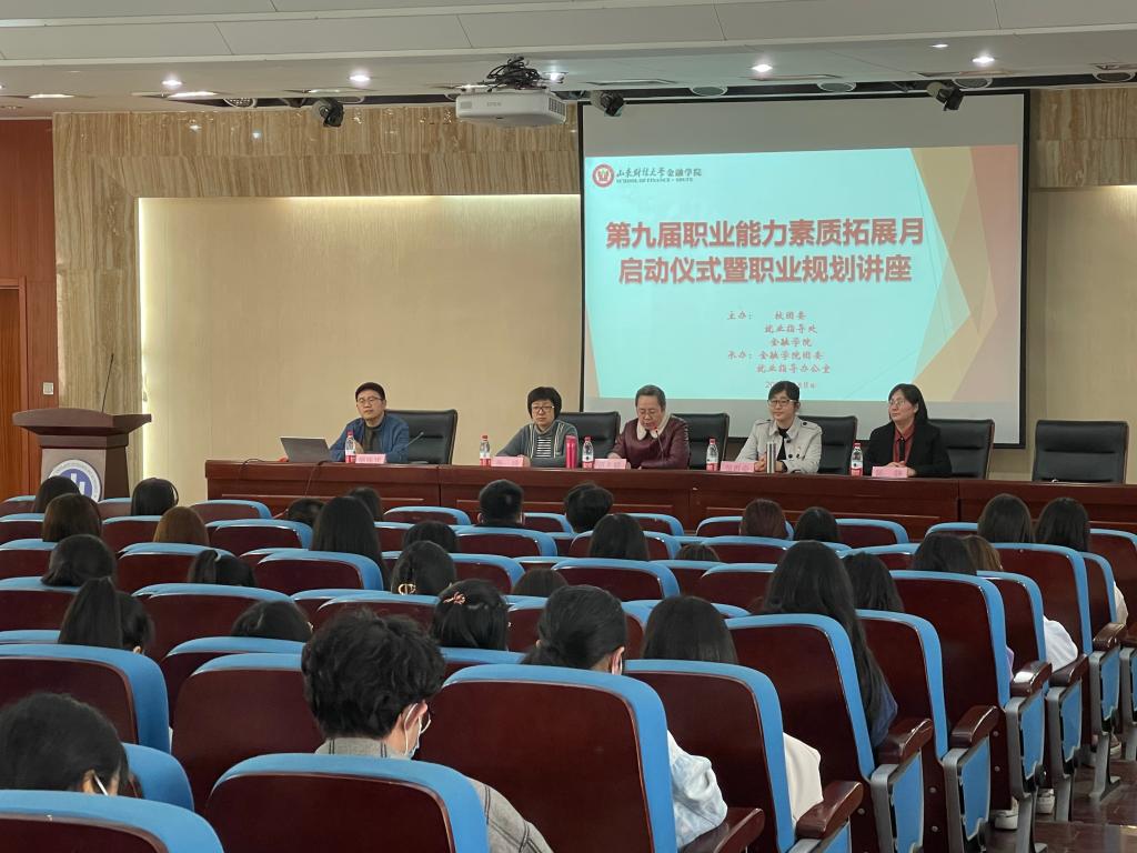 (通讯员:王昭贤 刘文清)4月8日下午,金融学院在圣井校区敏行楼举办了第九届职业能力素质拓展月启动仪式暨职业生涯规划讲座。本次讲座由山东大学经济学院教授、我院杰出校友张群姿主讲,金融学院团委书记陈静、学工办主任孙琦、宣传中心副主任邵珠建及学校部分学生参加此次讲座。学院党委副书记范志毅主持了本次活动。