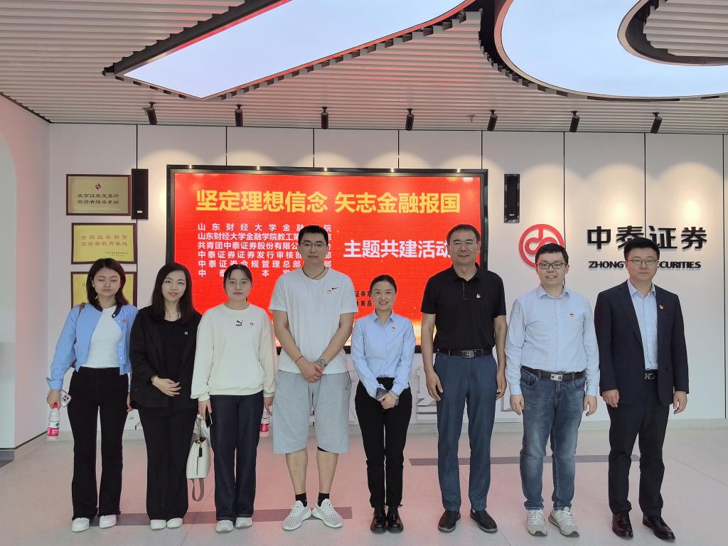 为深入贯彻落实党的二十大精神,坚定党员及青年职工听党话、跟党走的政治信念,弘扬中国特色金融文化,4月28日上午,山东财经大学金融学院教工第七党支部联合中泰证券证券发行审核部党支部、中泰证券团委、中泰证券合规管理总部党支部及中泰资本党支部,先后在山东财经大学舜耕校区、中泰证券投教基地开展“矢志金融报国,坚定理想信念”支部共建系列活动,喜迎第75个五四青年节。金融学院党委书记吴红文,党委副书记康亚通、李开传出席活动。
