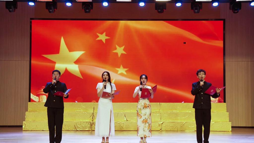 同学们的歌声青春洋溢、振奋人心,唱出了新时代青年的风华正茂,把内心深处的赤诚之情化作流淌的涓涓旋律,扣动师生们的心弦,带来充分的视听享受,凝聚了我辈青年勇往直前的奋进力量。中场时间,金融学院舞蹈队、啦啦操队带来舞蹈《万疆》。《万疆》盛放万丈霞光,触动起师生们心底心底最深沉的中华情。随后,金融学院主持人队带来《红旗颂》,铿锵顿挫的朗诵燃起澎湃的奋斗力量,让师生们热血沸腾。