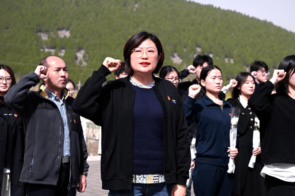 活动伊始,在邵珠建的主持下,全体成员在烈士纪念碑前献上花篮、鞠躬敬礼,表达崇高的敬意和深切缅怀之情。巍巍丰碑,英烈不朽。郭夕熙带领全体预备党员在纪念碑下重温入党誓词。誓言铿锵,初心弥坚。宣誓礼毕,全体成员于纪念碑前合影留念。