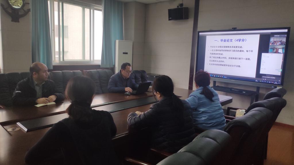 会议伊始,冯林从毕业论文、毕业实习、毕业资格审核、国内外访学学生的毕业资格、重修报名和考试安排等几个方面给同学们做出了详细的讲解和说明,强调了几个关键性的时间节点和注意事项,督促同学们务必按照学校规定完成学业和实习,希望大家能顺利度过大学的最后阶段。随后,李勇从疫情防控、人身财产安全等方面给同学们提出了建议、要求和期望,一方面希望同学们提高思想站位,继续做好防疫工作,落实区块链疫情填报系统的每日打卡工作,另一方面要注意自身的人身财产安全,注意保护自己。徐洁从认知、情绪和行为等方面对毕业生的心理建设给出了详细可行的建议,鼓励毕业生既要相信自己,也要学会科学解压,适时寻求帮助。最后,范志毅从就业形势、就业政策和就业心态等方面给毕业生提供了具体的说明和指导,以往届毕业生的实际毕业去向为例,介绍了当前就业形势的严峻性和紧迫性,引导毕业生要转变就业观念,提早为自己做好未来规划,同时,代表学院给全体毕业生送出了衷心诚挚的祝福。