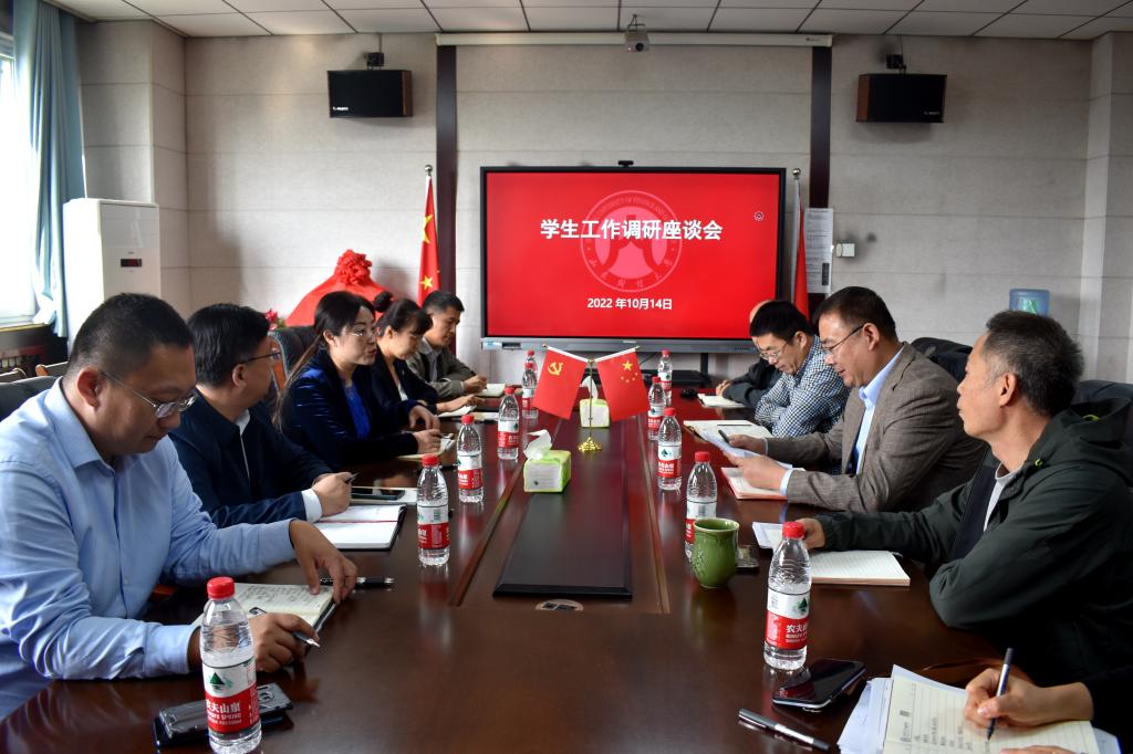 10月14日下午,学校党委学生工作部、学生工作处一行到金融学院调研指导工作。副处长孙丽华、张贞梅、周广春、刘思锋、张亚萌到我院调研指导学生管理。金融学院党委书记吴红文,副书记康亚通、李开传及全体辅导员参加了座谈会。