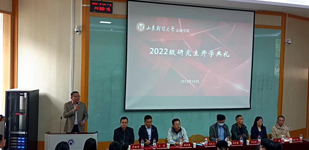 (通讯员:曹文建 范淑蕾)在欢度国庆和喜迎二十大的浓厚氛围中,10月4日下午,金融学院在舜耕校区第三阶梯教室举办了2022级研究生新生开学典礼。金融学院党委书记吴红文,院长彭红枫,党委副书记康亚通、李开传,副院长王营、王倩、肖祖沔,工会主席、办公室主任杨丰国,研究生辅导员,教学秘书及2022级全体研究生新生参加会议。开学典礼由学院党委副书记李开传主持。