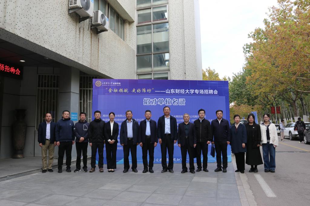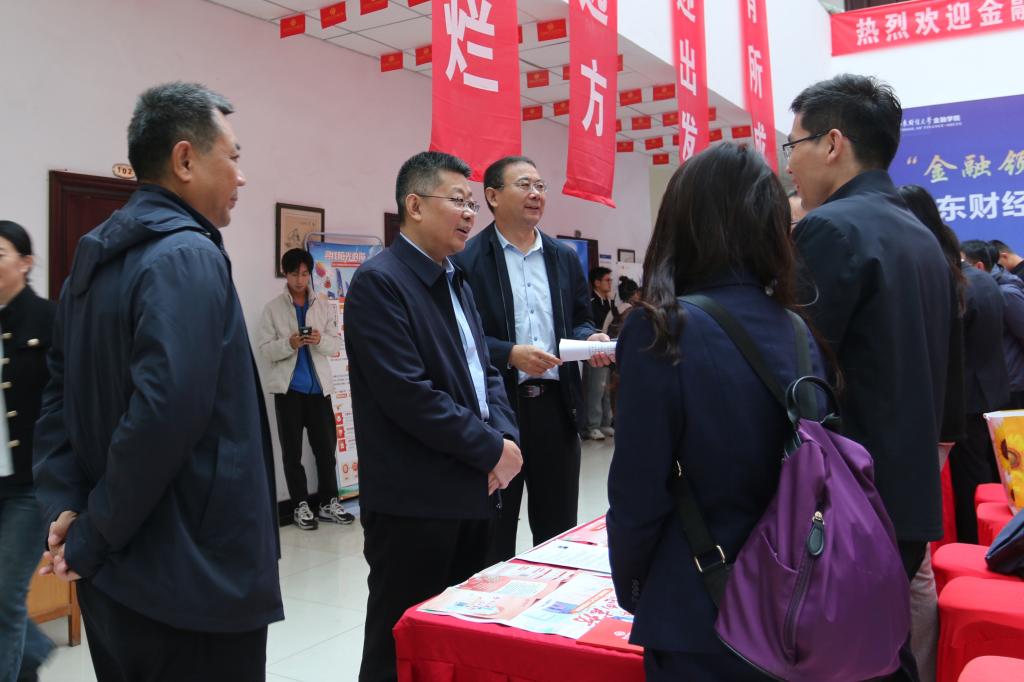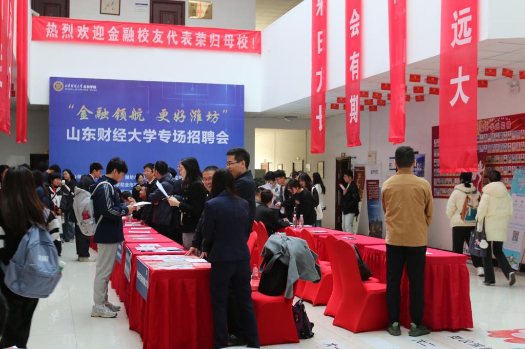 为深化校地合作,精准对接企业需求,提升毕业生就业质量,11月9日上午,金融学院在舜耕校区金融楼一楼大厅,与潍坊市财政局、潍坊市奎文区政府联合举办“金融领航 更好潍坊”——山东财经大学专场招聘会。招聘会启动仪式由山东财经大学金融学院党委书记吴红文主持,山东财经大学就业指导处处长刘奇耀、潍坊市财政局党组副书记、副局长,市金融稳定发展领导小组办公室常务副主任刘明出席仪式并致辞。奎文区政府领导曹瑞升、李丰伟,山东财经大学金融学院党委副书记康亚通以及潍坊奎文区金融协会、奎文区财政局、潍坊市资本中心、部分用人单位代表和毕业生代表共计100余人参加。