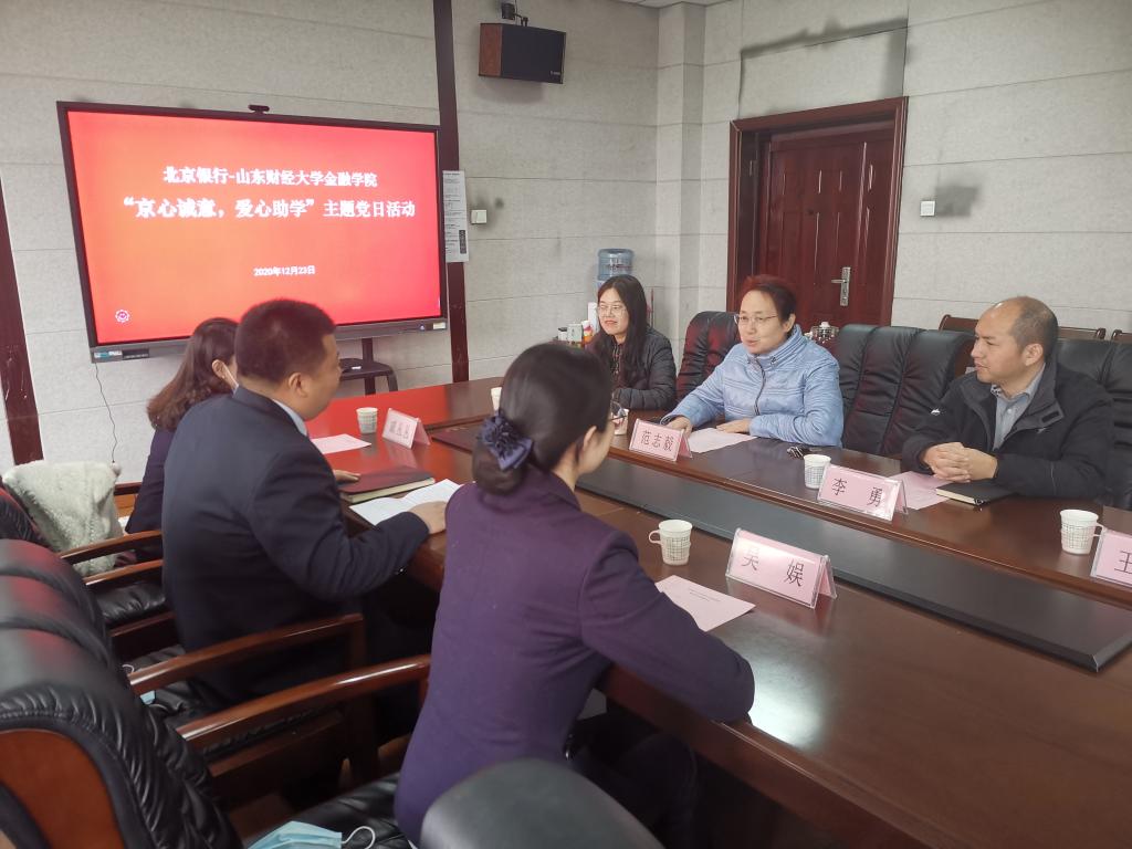 活动伊始,范志毅副书记对北京银行千佛山支行表示热烈欢迎,对北京银行连续三年对我院困难学生的资助表示感谢,捐赠义举展现了贵行对教育事业的爱心、关心和责任心,同时希望受助学生能够更加刻苦努力,学有所成,回报社会。盖亮表示,北京银行一直坚持传递正能量,努力践行社会责任,对困难学生的资助可以传递温暖,奉献爱心,激励他们更快成长和成才,同时更是对党的十九届五中全会报告精神的积极响应,在党的统一领导下,形成育人合力,共同为实现“十四五”规划和2035年远景目标贡献力量。随后,北京银行干佛山支行为我院受资助学生颁发了爱心助学金。受资助学生一致表示,在今后的校园生活中,将以更饱满的激情投入到学习和工作中,在困境中成长成才,用优异的学习和实践成绩来回报社会。活动结束后,双方就后期开展党建共建、校企合作等继续进行了进一步交流。