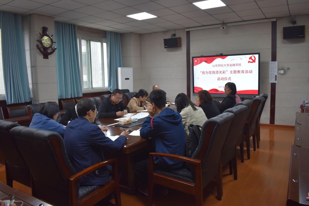 (通讯员 邵珠建)为庆祝中国共产党建党100周年,丰富党史学习教育形式,3月26日,金融学院于舜耕校区第三会议室启动“我为党旗添光彩”主题教育活动。学院党委书记吴红文主持了启动仪式。