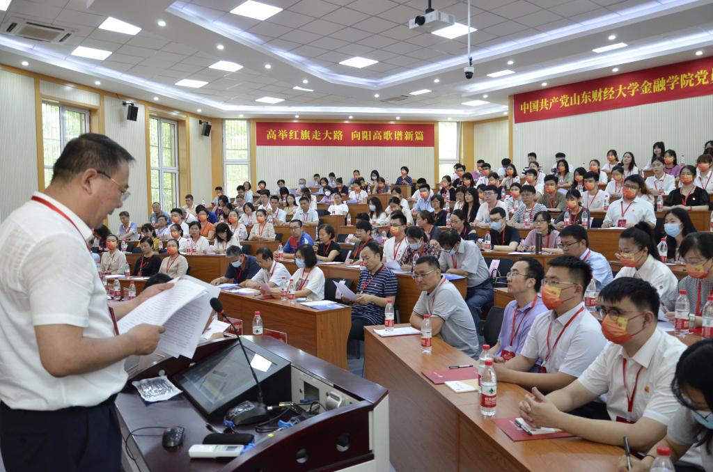 6月26日上午,中共山东财经大学金融学院党员大会在舜耕校区第三阶梯教室顺利召开。金融学院全体党员参加了大会,部分学生代表、民主党派和无党派人士代表受邀列席了大会。