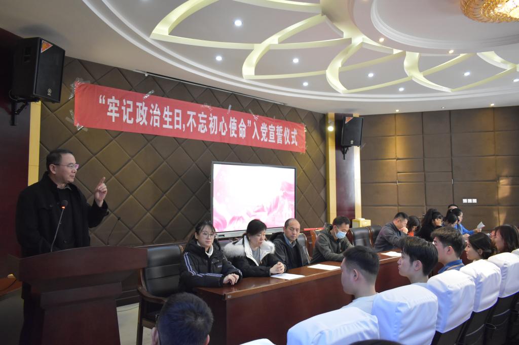 会议最后,吴红文为新党员上党课,他谈到,入党是人生重大的选择,是理想信念的传承,要求全体党员保持入党动机的纯洁性,增强政治敏锐性和判断力,发挥先锋模范作用,牢记使命、挺膺担当、砥砺前行,切实做到组织入党、思想入党。